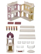 The set comes with a two-storey department store building and an entrance tower. You can open and close the main building to enjoy different layouts. The main building has a manual lift that can carry figures to the upper storey. The windows are detachable and can be replaced with the windows from other Town Series items. You can create your own townscape by combining this product with other buildings in the Town series, such as the Delicious Restaurant, Designer Studio, and Creamy Gelato Shop. You can also customise your building by replacing the windows, fences, and awnings included with the building. Perhaps add a Juice Bar, or a Shoe Shop, from the village shopping range – you can make your department store truly unique.